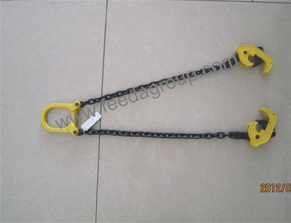 SL drum clamp Working load limit(WLL):1T. Use: ● For safe lifting and transporting of steel (oil) drums. ● With automatic locking mechanism. ● The SL steel drum clamps can be used single or per pair as well. ● Avoid snatch or shock loading. ● Clamps firmly on 2-leg Grade 80 chain ling. ● This clamp is extremely light weight and very quick and easy to use. | ||||